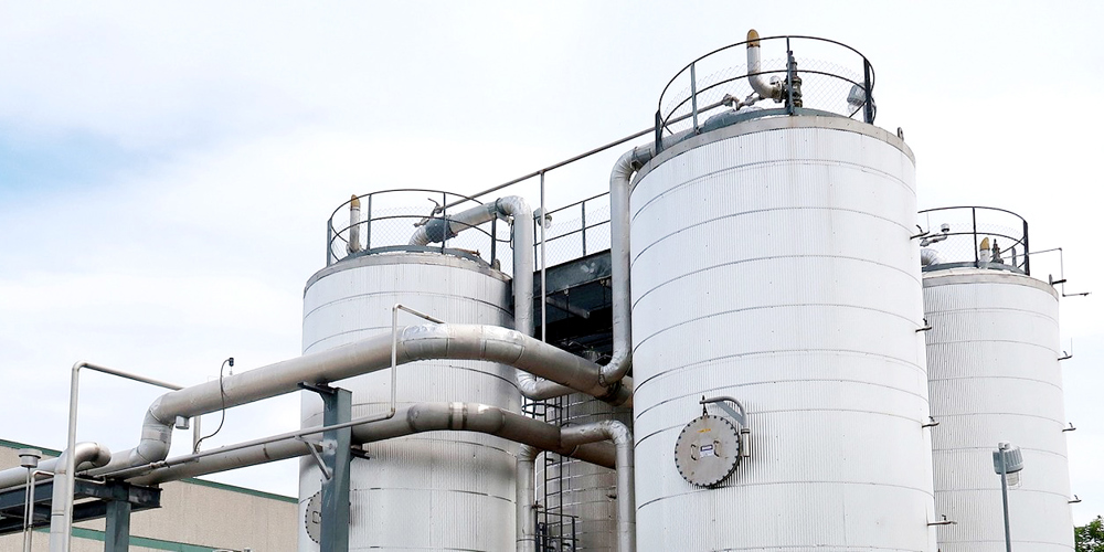 To accomplish this, the LFG is filtered through large silo-like stainless steel tanks filled with sulfur-reducing media to lower the H2S content. It then flows through a chiller heat exchanger to lower its humidity and temperature, and then continues on to be compressed.