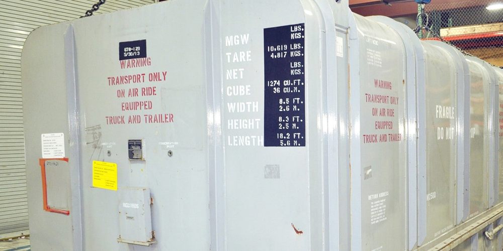 Aeroderivative gas turbines are lighter weight versions of a gas turbine. They are designed so that fuel and air are mixed and then ignited to provide power. These three turbine packages were valued at approximately US$7 million each. For transport, they were placed inside containers with a turbine-specific transport cradle to reduce shock and vibration.