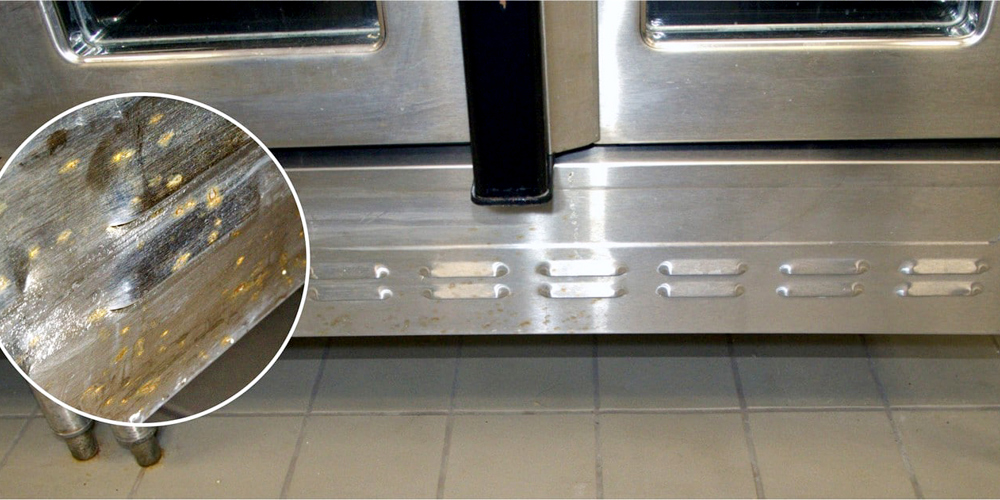 A renovation company inspected the damage and reported that the stainless steel had pitting corrosion and that the components could continue to corrode indefinitely. They claimed that acid vapors present from the cleaning had the potential to cause damage to seemingly unstained areas at any time. Therefore, they concluded that all stainless steel kitchen components needed to be replaced.