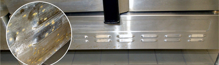 Using a combination of chemical and metallurgical principles, ESi determined that stainless steel kitchen components could be restored to their pristine state, following staining damage from acid exposure, eliminating need to purchase all new equipment.